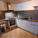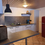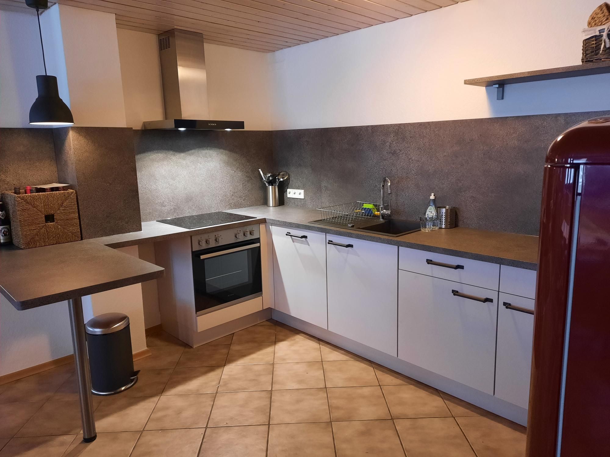 Über die Treppe erreichen Sie das 1. OG mit einem großzügigen Wohnzimmer (Schlafmöglichkeit für 7./8. Person), eine neu gestaltete Küche sowie Essecke im Erker. Nebenan befindet sich ein hochwertiges, im Frühjahr 2023 neu gestaltetes Bad mit großer Duschwanne und Regendusche.