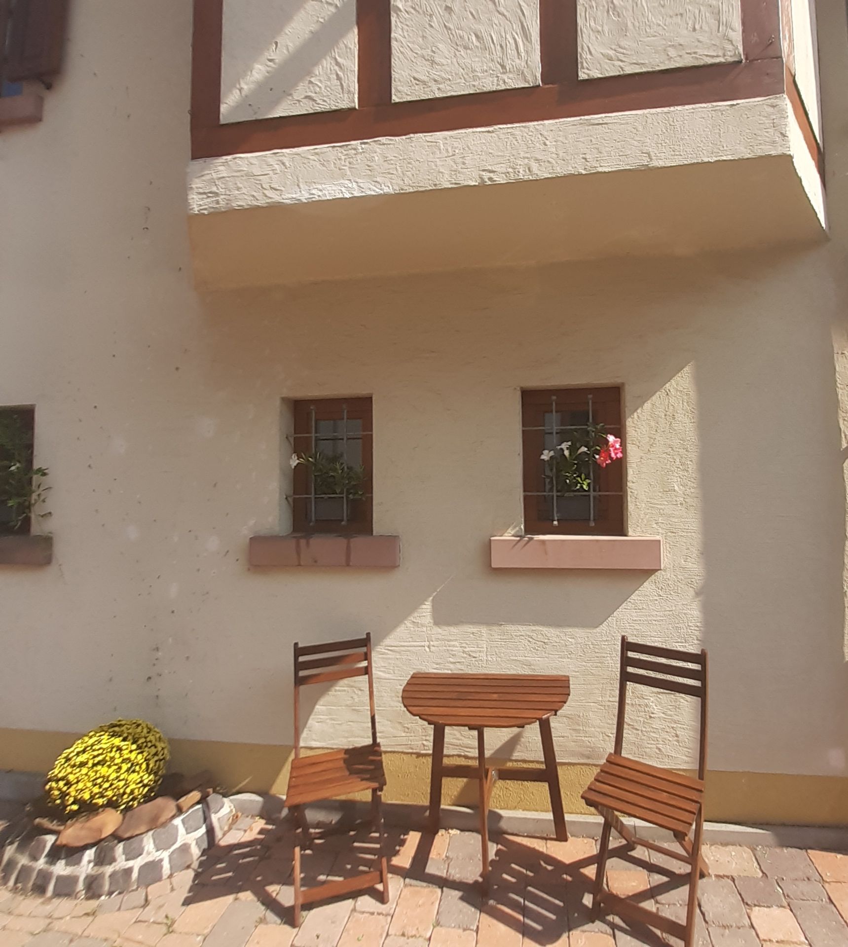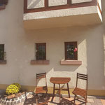 Da sich das Haus in der Ortsmitte befindet, hat es keinen Garten. Sie können sich jedoch im Freien aufhalten auf dem gegenüberliegenden Dorfplatz oder auch am Platz am Dorfbackhaus nur wenige Meter entfernt.